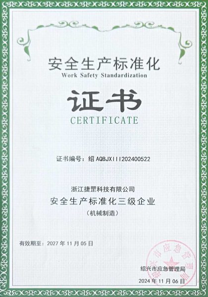 En 2013, la empresa obtuvo la Certificación del Sistema de Gestión de Calidad ISO 9001. Este hito significa que la empresa ha iniciado una nueva etapa en el desarrollo estandarizado de la gestión de calidad.