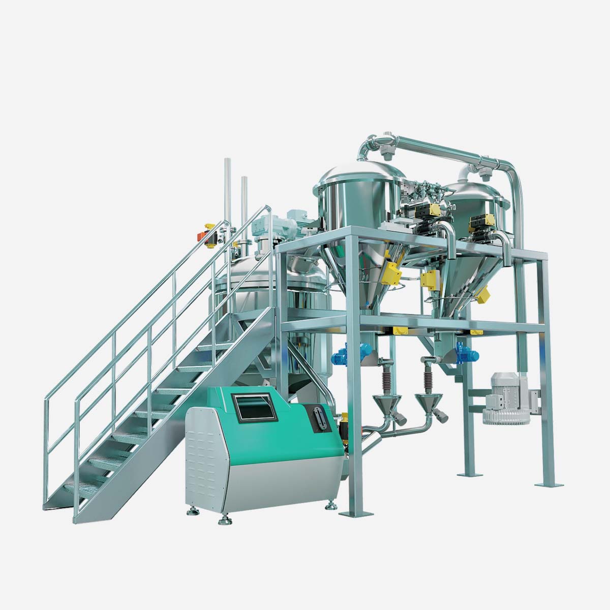 Комплексный блок загрузки и диспергирования совместим с различными видами упаковки порошковых материалов, включая небольшие мешки, тонарные мешки и сыпучие материалы из цистерн, удовлетворяя потребностям загрузки при разных формах поставки сырья.